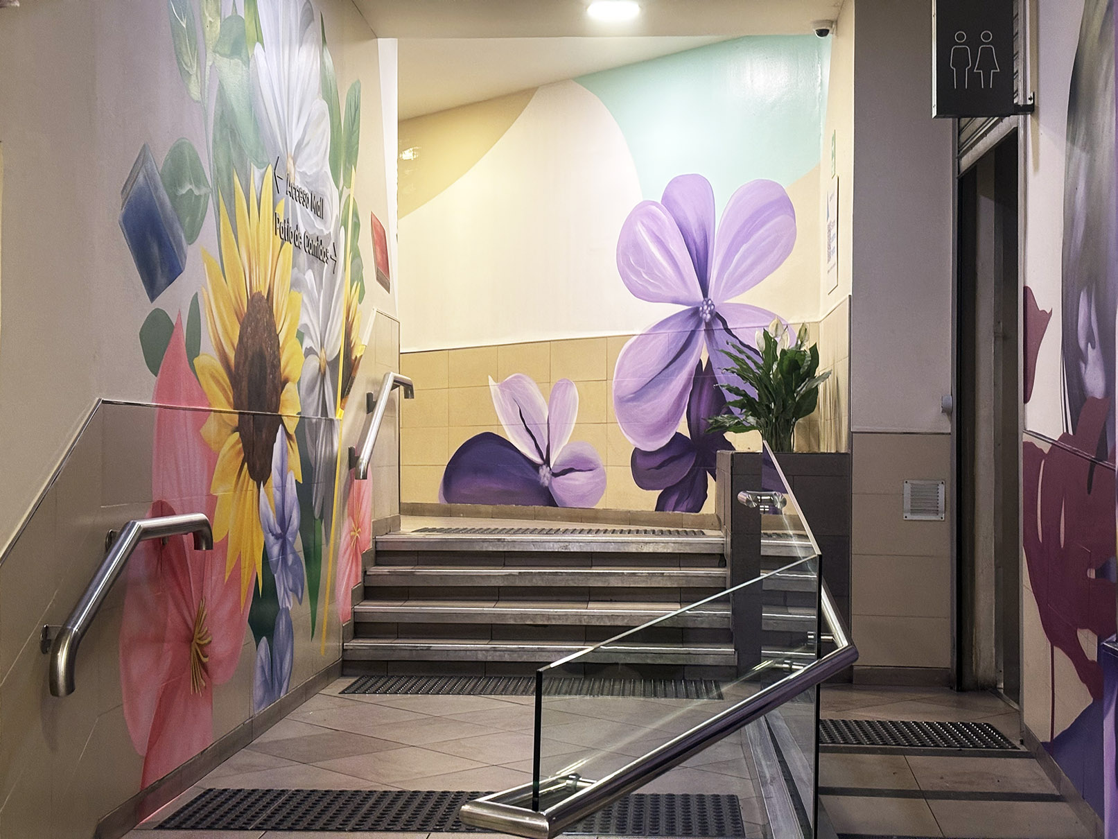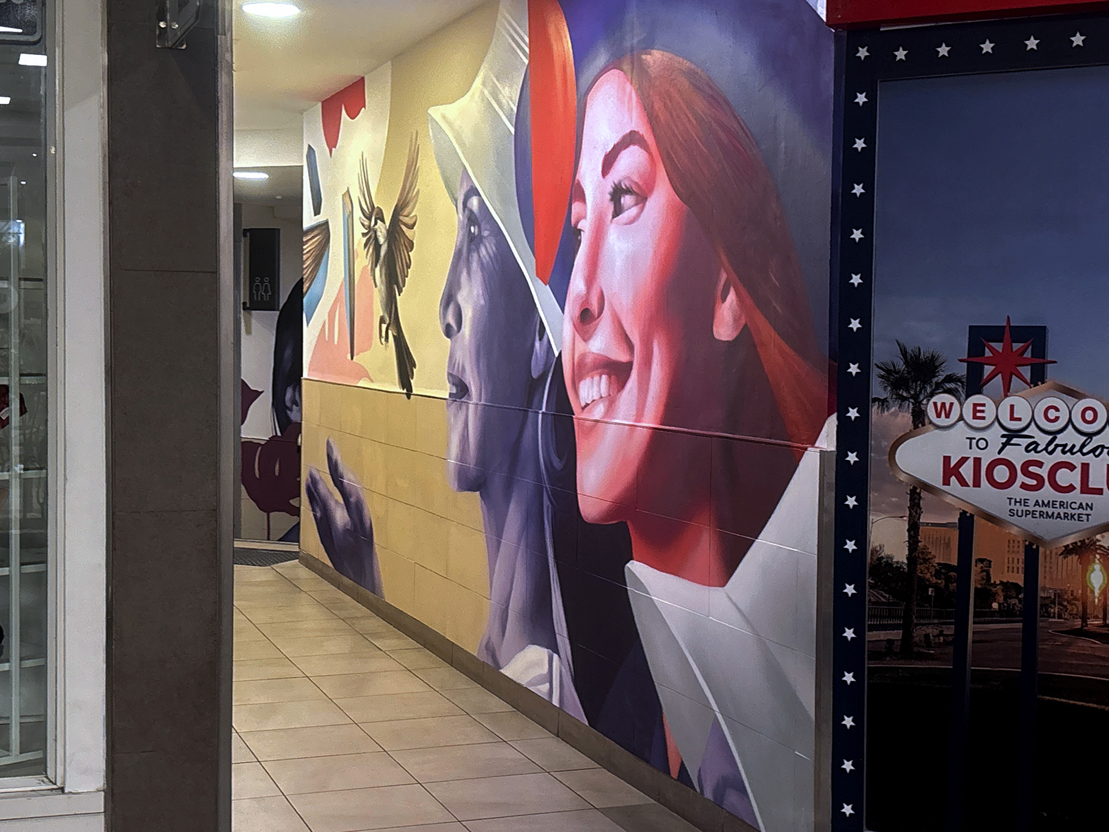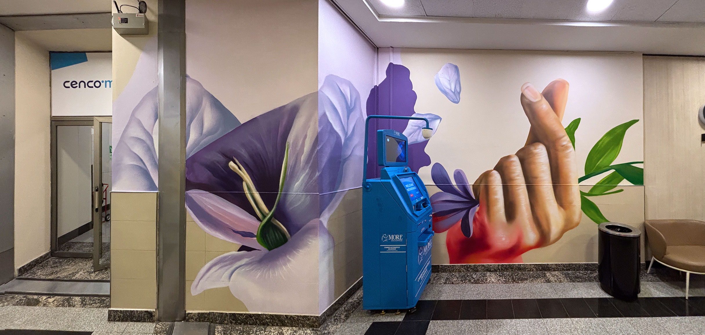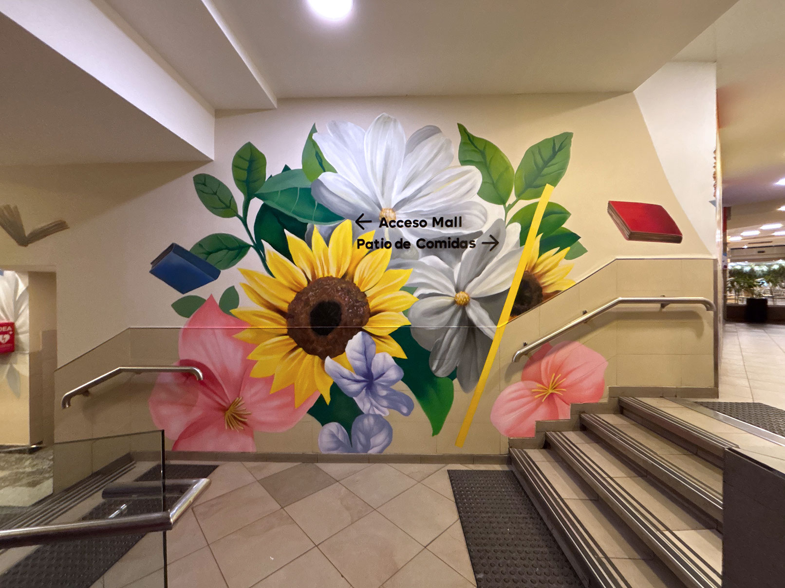 Interesaste es ver como un mural puede trascender su dimensión decorativa para transformarse en un elemento activo dentro del espacio. Más que un fondo visual, se convierte en una intervención que modifica la percepción del lugar, lo vuelve más humano, más cercano y con identidad propia. En un entorno comercial marcado por el tránsito constante, la obra ofrece un respiro, un momento de contemplación y hasta un punto de encuentro. Al integrar símbolos, colores y formas pensados para dialogar con la arquitectura y con quienes la recorren, el mural genera una experiencia visual y emocional memorable, que conecta a las personas con su entorno y da al espacio una huella única y reconocible.